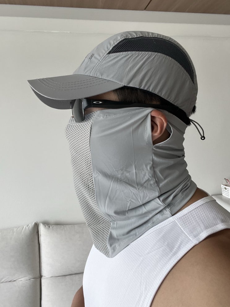 3월부터 자외선이 얼마나 따갑던지 운동 마니아 우리 남편 얼굴을 책임질 #얼굴햇빛가리개 #블카 를 사용해...