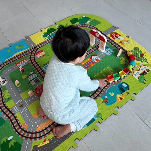 트레이더스에 갔다가 가격도 좋고 전동으로 가는 기차놀이 장난감에 매트도 포함되어 있어서 여러가지 활용...
