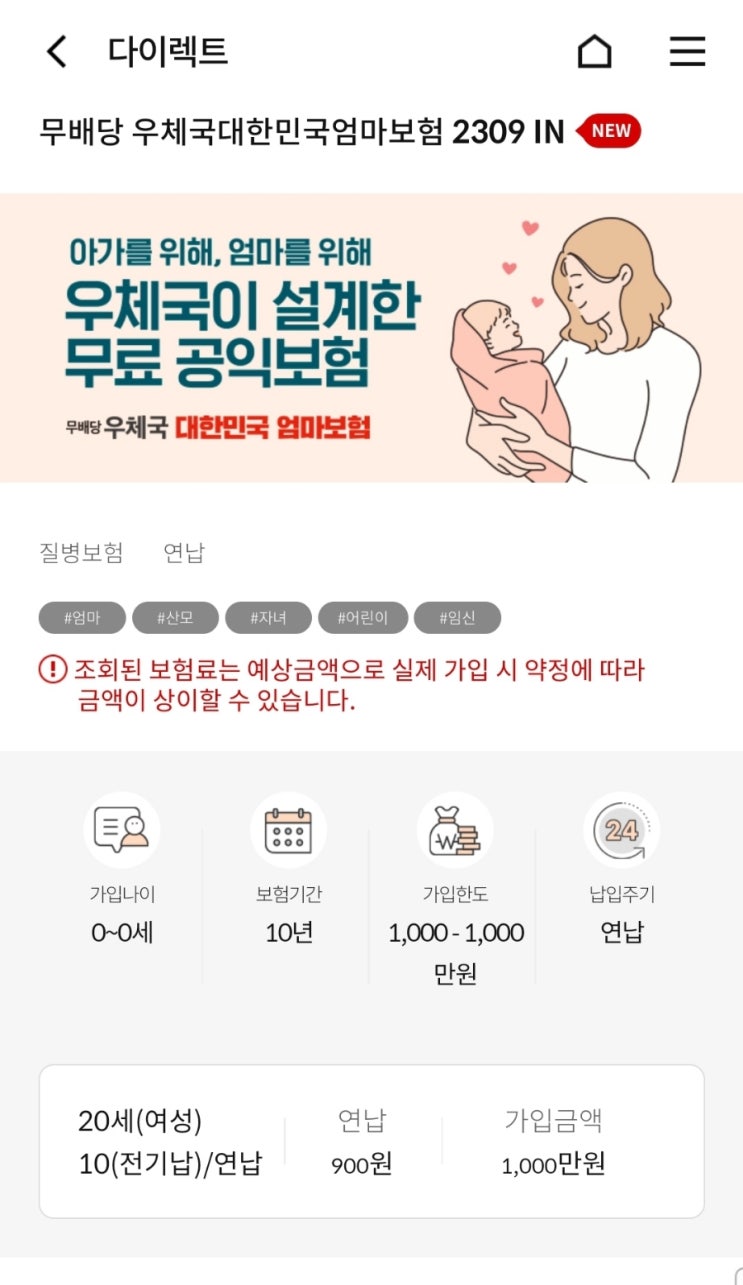 임산부라면 필수! 무료로 드는 우체국 엄마보험