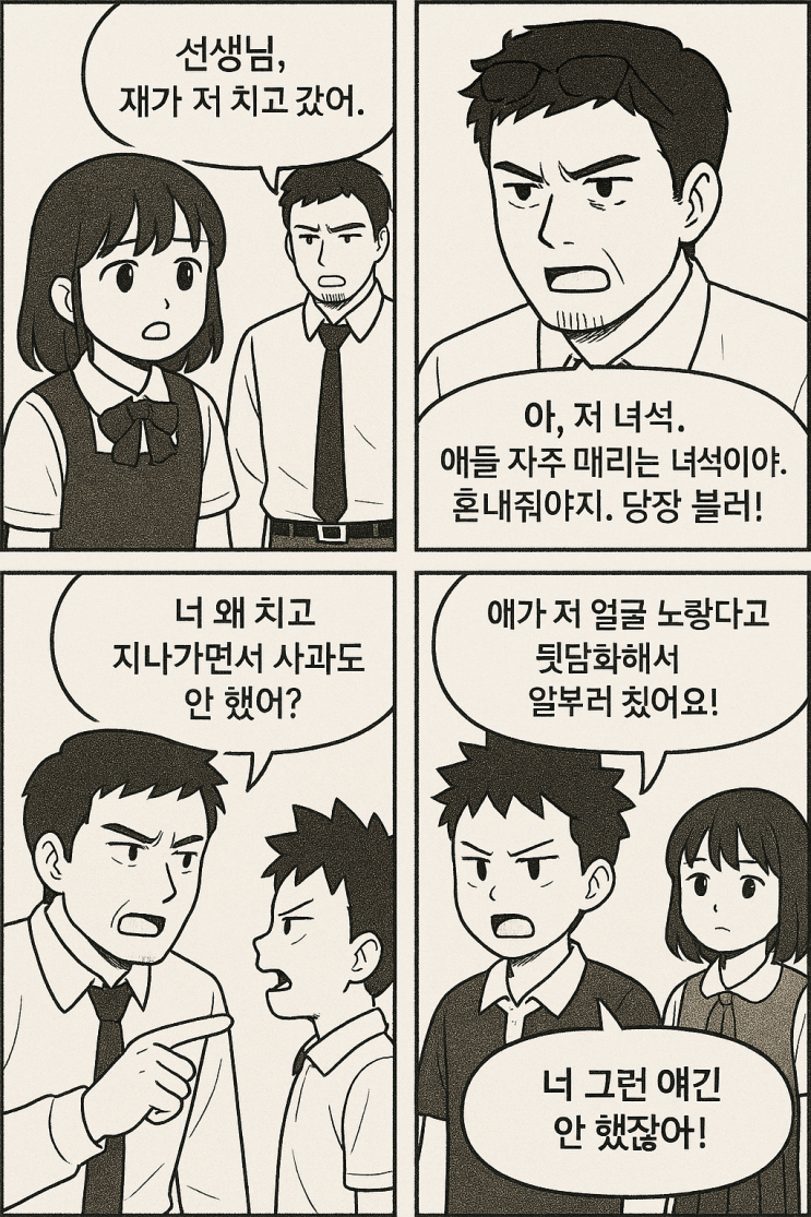 여자애가 고자질을 하길래 남자애가 평소 위험한 장난을 하는 아이란 얘기가 있어서 불러놓고 혼을 내려고 ...