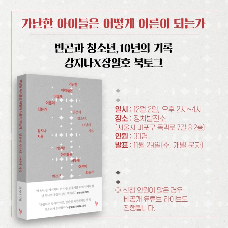 [홍보] 『가난한 아이들은 어떻게 어른이 되는가』 출간 기념 북토크