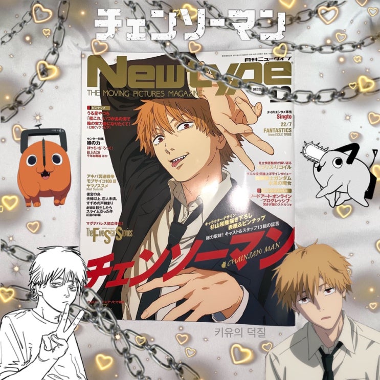 체인소맨 애니 방영 기념으로 체인소맨 표지 잡지가 여러가지 출간 중인데 그 중에서 뉴타입을 구매했습니...