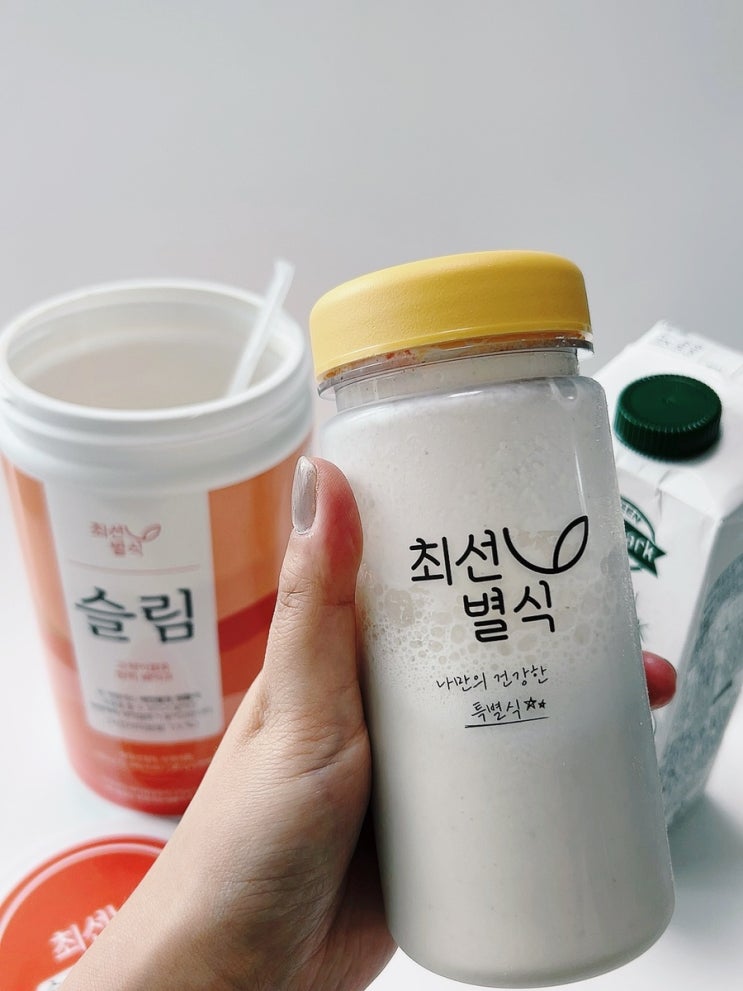 최선별식 슬림 안녕하세요. 제가 요즘 아침 대신 식사대용단백질쉐이크를 먹어주고 있는데요. 한 가지 식사...