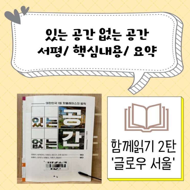 독서 있는 공간 없는 공간 서평ㅣ글로우 서울의 공간 디자인 ㅣ 사람들이 더 오래 머물다 가는 공간의 비밀은?
