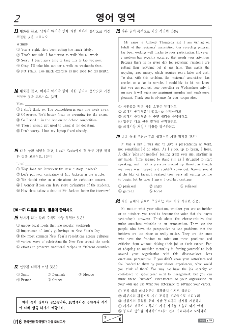중고등 영어 내신 부교재 기출문제 변형문제 사이트 정리