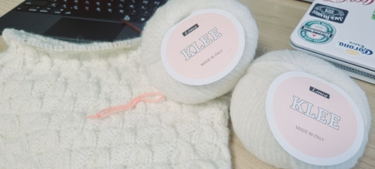 열매달 이틀 온 화 콘사 4.5mm 스와치 세탁전 22코 30단 세탁 후 21코 31단 Simplicity Jumper 뜨기 위한...