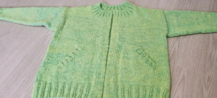 앞판 뒷판 고무단 끝 이제 넥 고무단과 양쪽소매가 남았어요 여기까지 뜨며 도안상 오류를 발견하여 작가님...