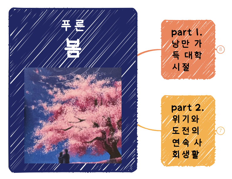 2025. 3. 3.(월) 오늘의 마인드 맵 목차 - '푸른 봄'의 앞에 part 1. 낭만 가득 대학시절 part 2...