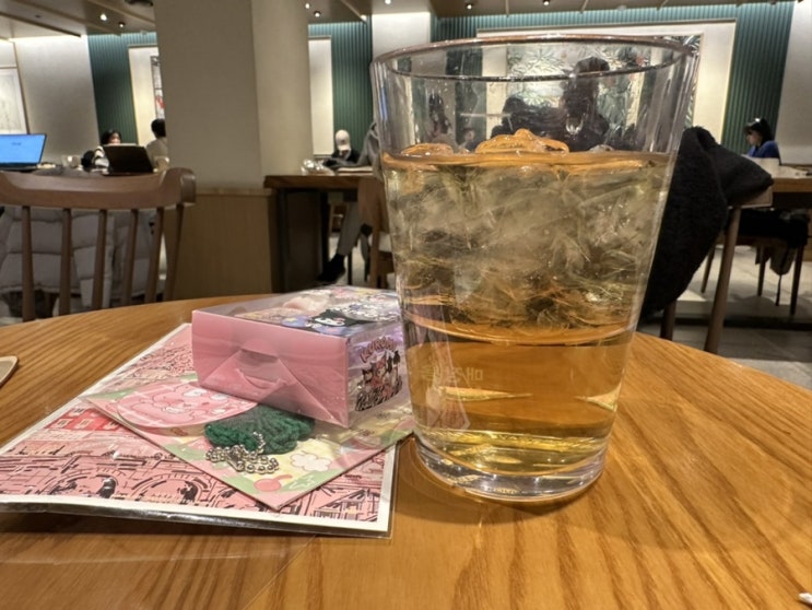 밥먹고 직장동료분의 7세 따님 ..의 크리스마스 카드를 적으며 후식으로 스타벅스 아이스 민트 블렌드티 (4...