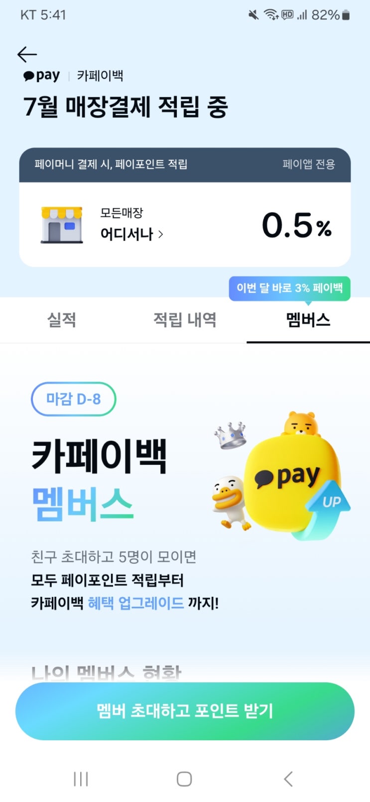 [카페이백 멤버스] 멤버스를 완성하면 최대 400원 증정/ 결제마다 2% 페이백, 최애매장은 3% 페이백