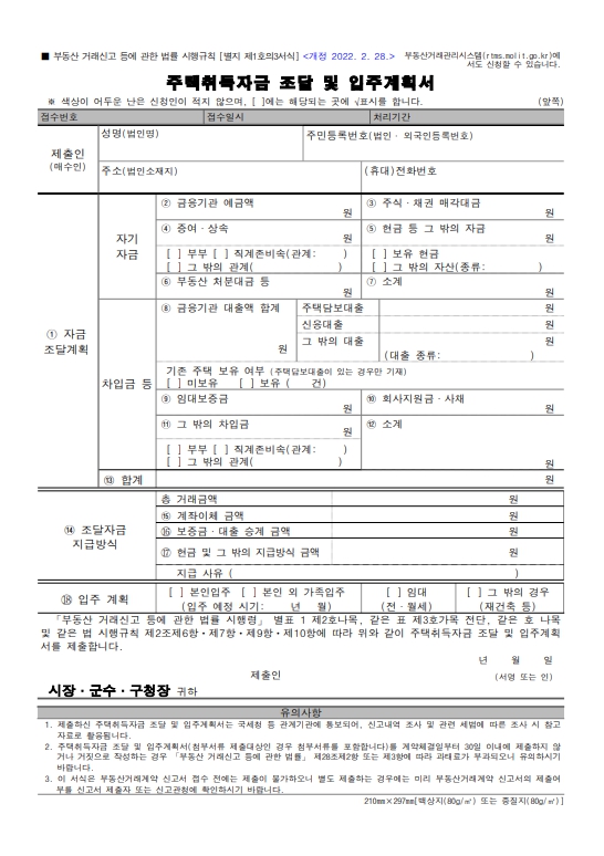 주택 자금조달계획서 작성방법 디테일한 설명