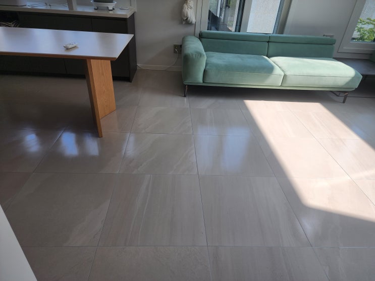 포세린타일 바닥재로 시공된 거실바닥 청소가 잘 안되면