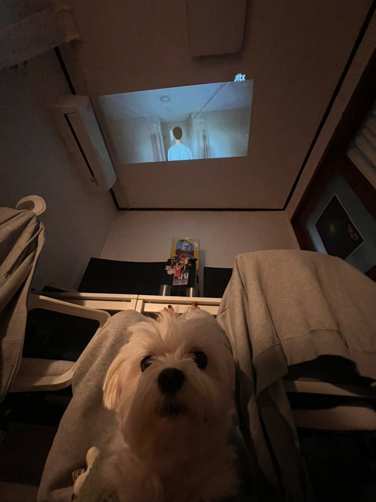 HY300 미니 빔프로젝터 홈시네마 평소 목디스크 때문에 고생하는 나를 위해 내돈내산 구입. 하루종일 컴...