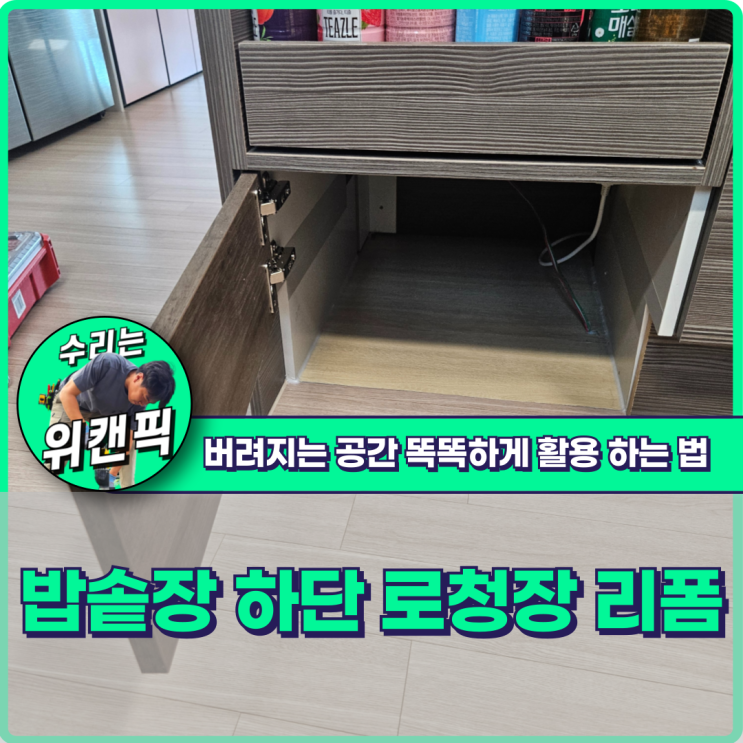 밥솥장 하단 리폼으로 만든 로봇청소기 수납장 안녕하세요. 집도 인생도 수리하면 된다 아들셋 아빠 위캔픽...