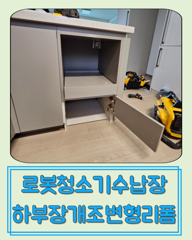 로봇청소기를 사용할 예정인가요?! 주방 싱크대 하부장에 연결하고 싶으세요?! 하부장을 개조 리폼해서 로...