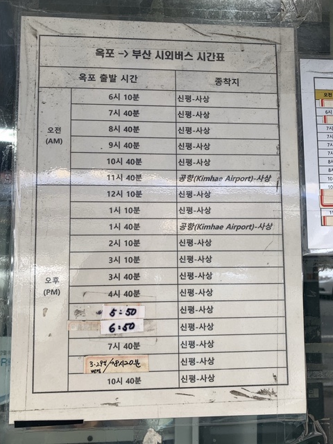 거제 옥포 시외버스 정류장 시간표 (2022.03.20)