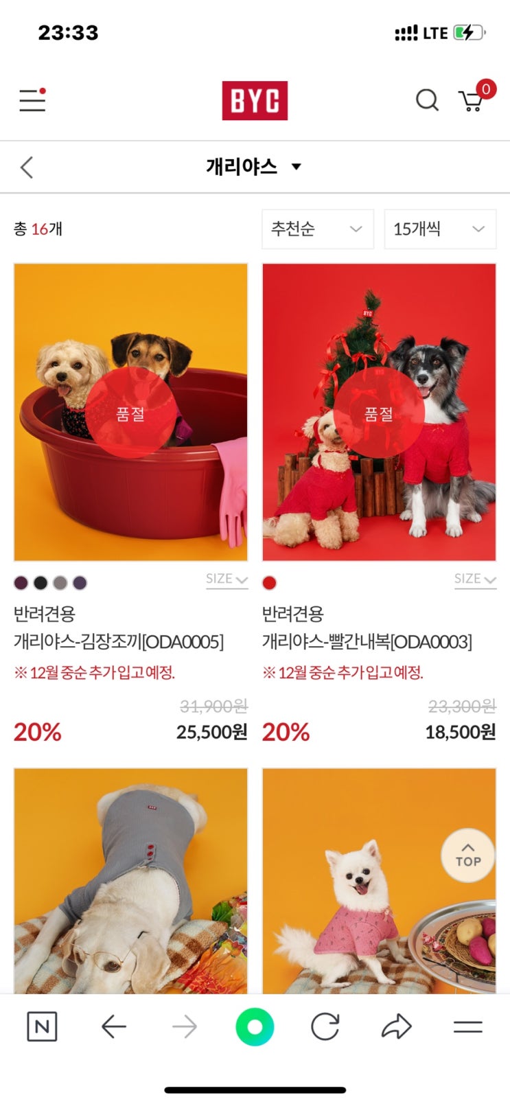 강아지 내복 게리야스, BYC