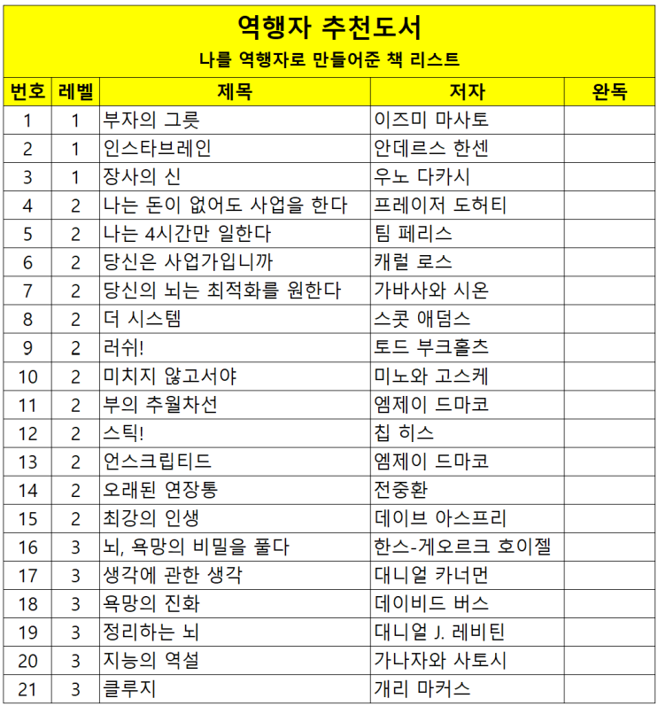 역행자 자청 추천도서 목록