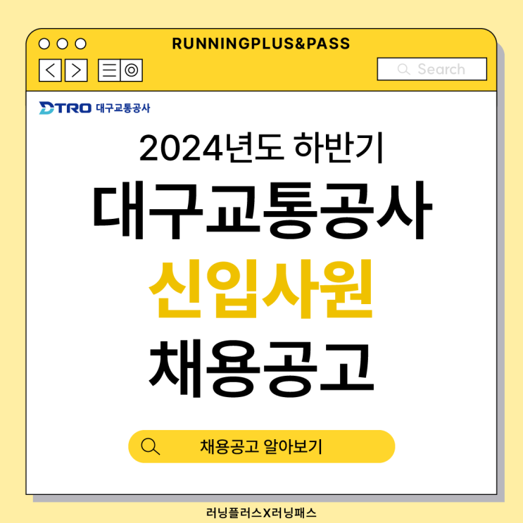안녕하세요. NCS 직업교육 전문기관 러닝플러스입니다. 오늘은 2024년 하반기 대구교통공사 신입사원(일...