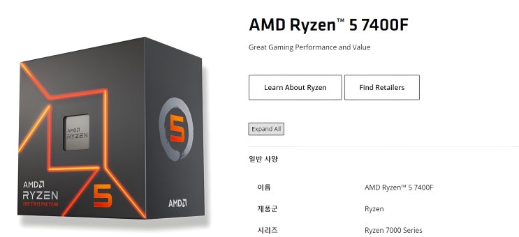 AMD 보급형 라이젠5 7400F CPU 출시: 7500F의 하위 제품