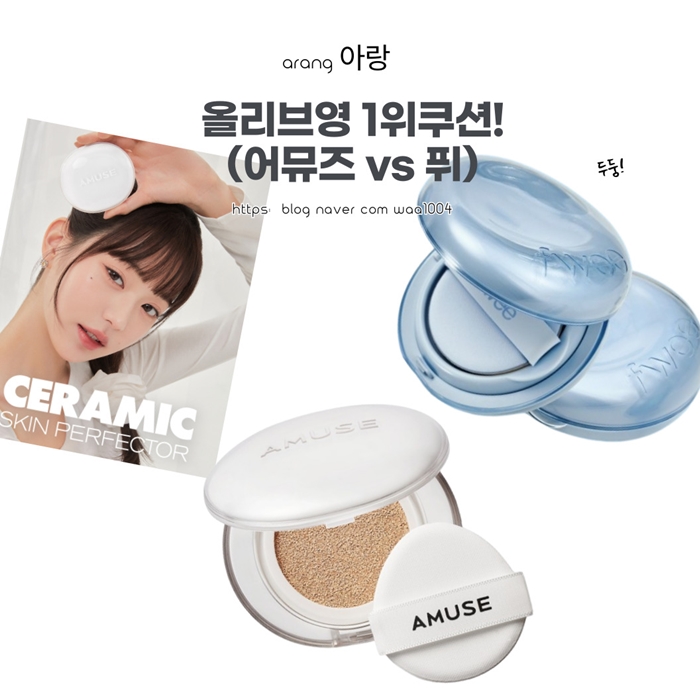 아랑 추천 올리브영 1위 쿠션! (어뮤즈세라믹 스킨 퍼퍽터 vs 퓌 쿠션 글래스 내추럴)