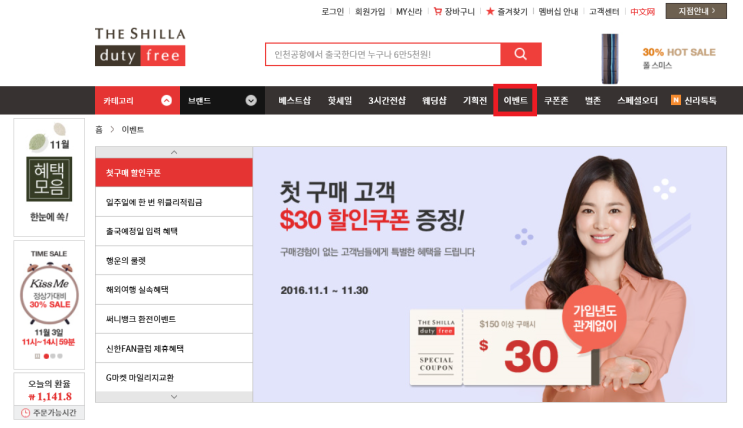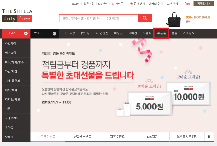 2016년 11월 신라 면세점 할인쿠폰