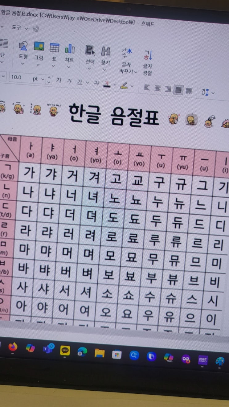 한글교재 만드는 중. 만들고 출력해서 글씨 쓰기 부담 없는지 직접 써봤다. 일단 미얀마에서 온 무세스 한...