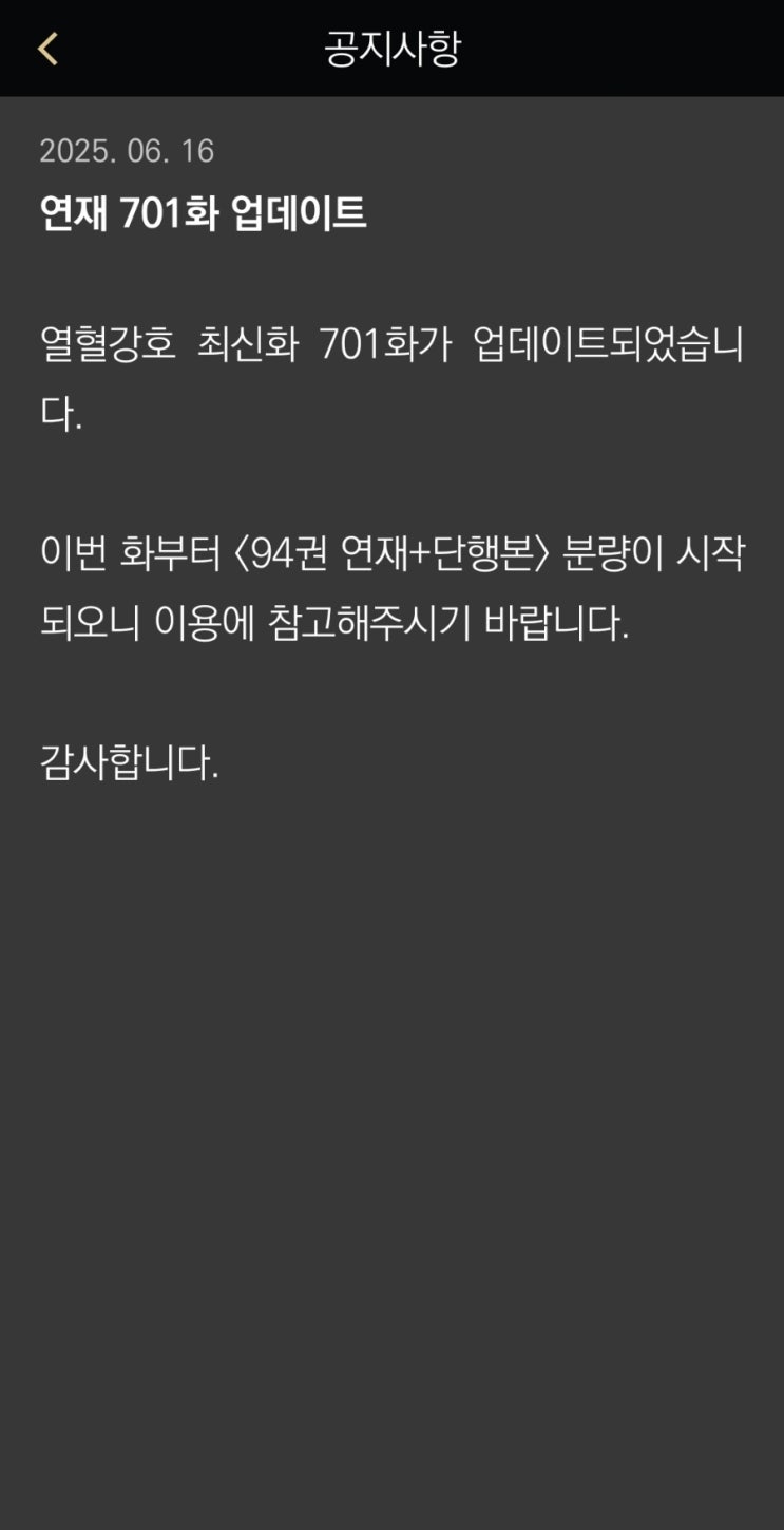 조금 전 열혈강호 어플에서 701화 업데이트가 되었습니다! 오늘은 스토리 전개가 많은 화였던거 같습니다! ...