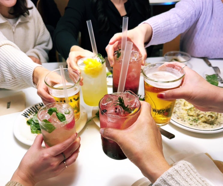 1년만의 동기 모임~~ 여자 6명이 우르르 가서 강남맛집 후추포인트 메뉴판 탈탈 털어 다 먹고 옴. ㅎㅎ 매...
