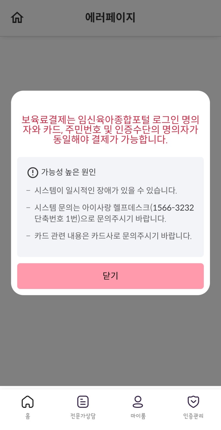 어린이집 보육료 결제일 갑자기 어플 결제 안될때