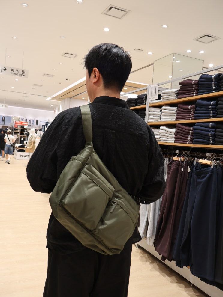 유니클로 잠실 롯데월드점 방문 후기 : 유틸리티 숄더백, 멀티 포켓 숄더백, 데님 집업 블루종, 린넨 셔츠 ...