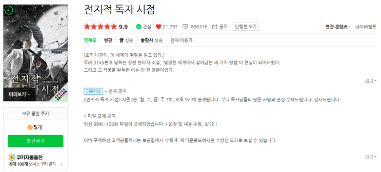 전지적 독자 시점 소설 리뷰 - 인생이 담긴(?) 책