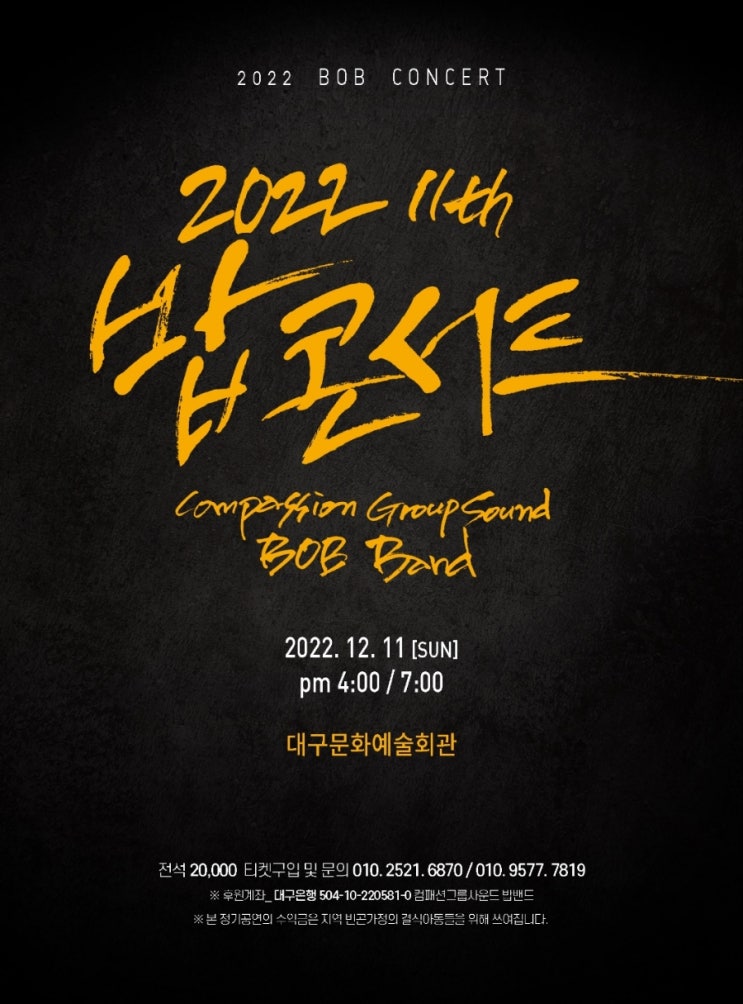 이번주 일욜 오후 4시, 7시~ 대구문화예술회관 팔공홀에서 밥콘서트가 열립니다~ 많은 관심과 사랑.. 더불...