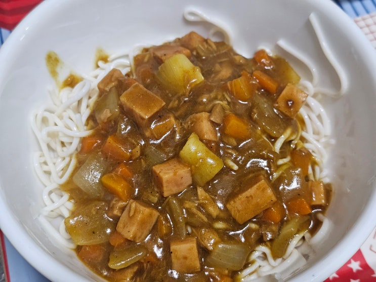 [레시피] 스팸과 참치캔으로 만든 카레 두부면(feat. 골든커리 중간매운맛)