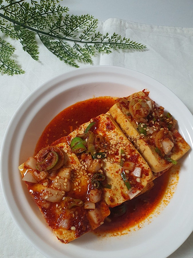 손두부 고추가루 양념장 매콤한 두부조림레시피