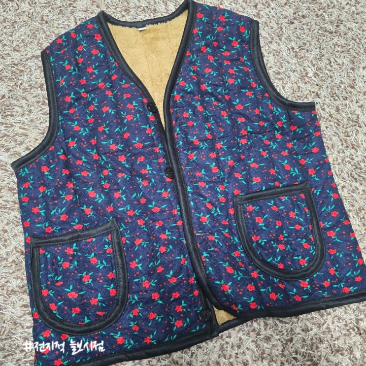 레트로 감성 할머니 꽃무늬 조끼 김장 조끼, 가성비 좋고 선물용으로 좋고 정말 따뜻해요.