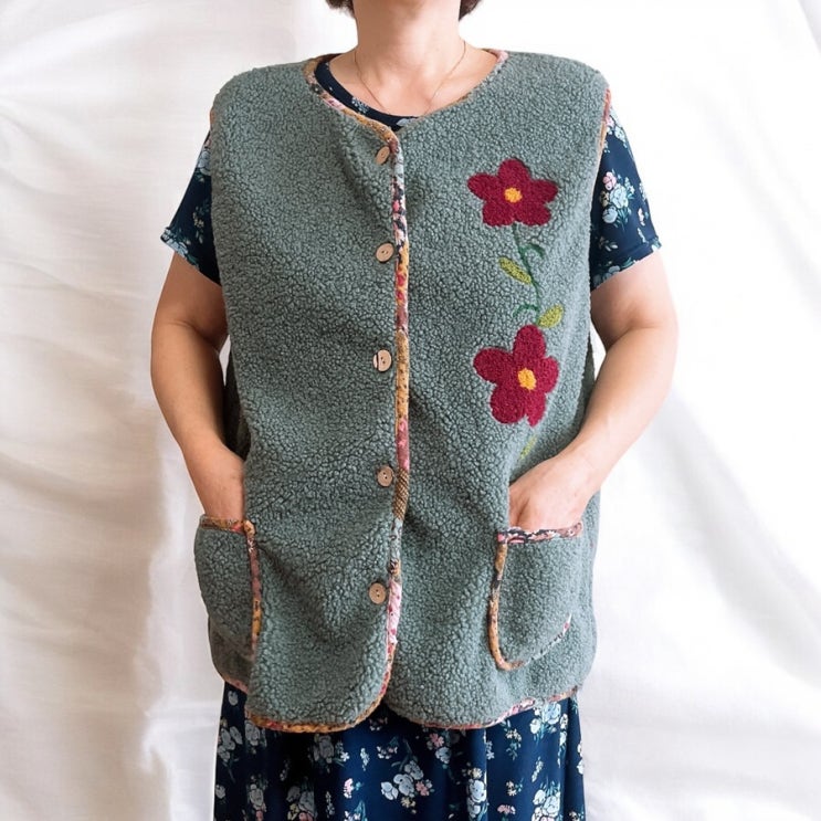 촌카스룩 뽀글이 꽃무늬 할머니조끼