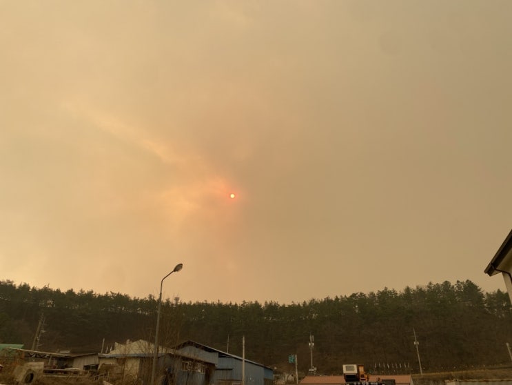의성 산불의 영향으로 청송 하늘이 며칠째 뿌옇다. 불길은 여전히 살아서 확장해나가고 모든 게 속수무책이...