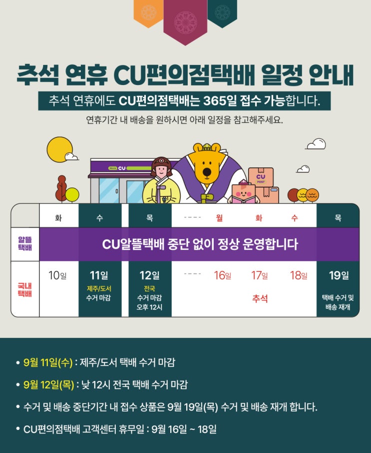 [공지 사항]추석 연휴 CU편의점택배 일정 안내