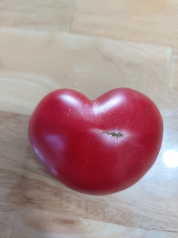 며칠 전에 산 토마토 상하기 전에 김치냉장고에 넣으려고 정리하다보니 하트 모양 토마토가 뙇... 신...