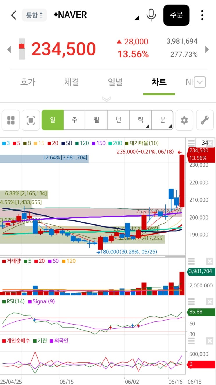 네이버 보유하고 있던 물량 중 일부 수익으로 탈출~ 쭉쭉쭉 더 올라서....모두 다 익절 하길 바래봅니다 다...