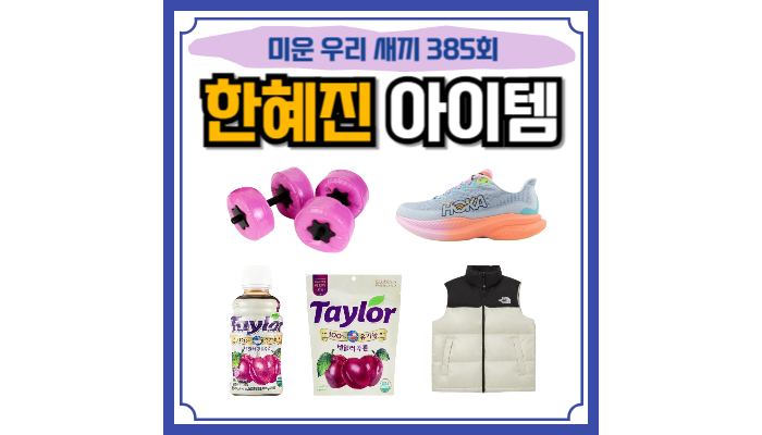미우새 한혜진 물덤벨 아령 음료수 건자두 젤리 테일러 푸룬 Taylor 패딩 조끼 운동화 러닝화 2024년 3월 ...