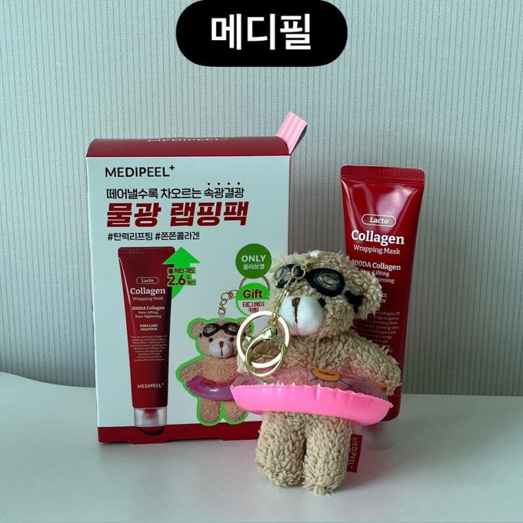 올리브영콜라겐팩 추천 메디필 레드 락토 콜라겐 랩핑마스크 구매링크 가격 및 용량 70ml + 테디베어 키링 ...