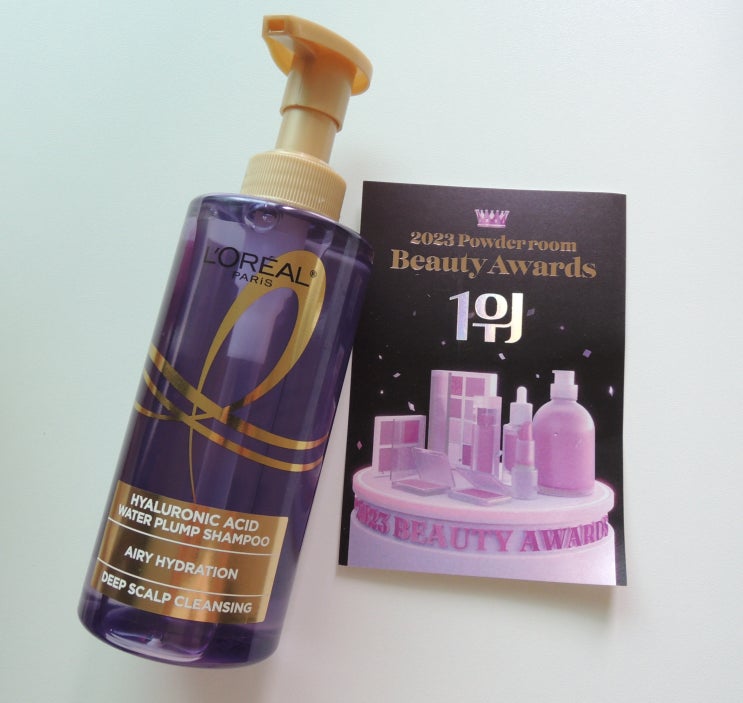 2023 상반기 뷰티어워드 1위 박스 마지막 제품은 로레알파리 히알루로닉 애시드 워터 플럼프 샴푸입니다. ...