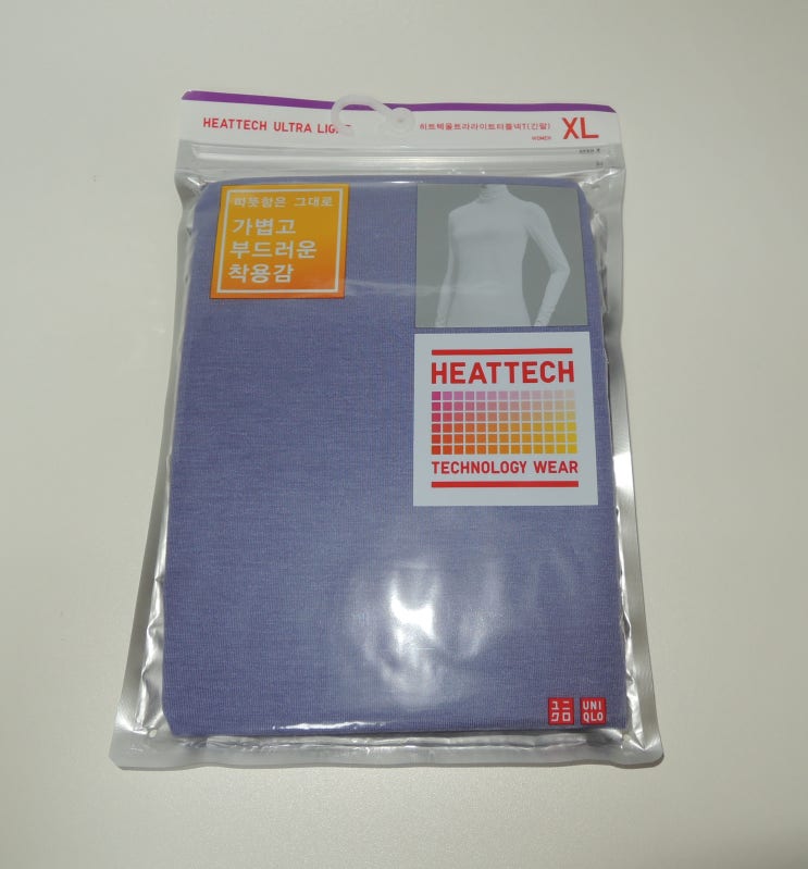 환절기 추워질 때 필수템이죠. 유니클로 히트텍 울트라 라이트 터틀넥 만나보았어요. 뒷면에 간단하게 제품...