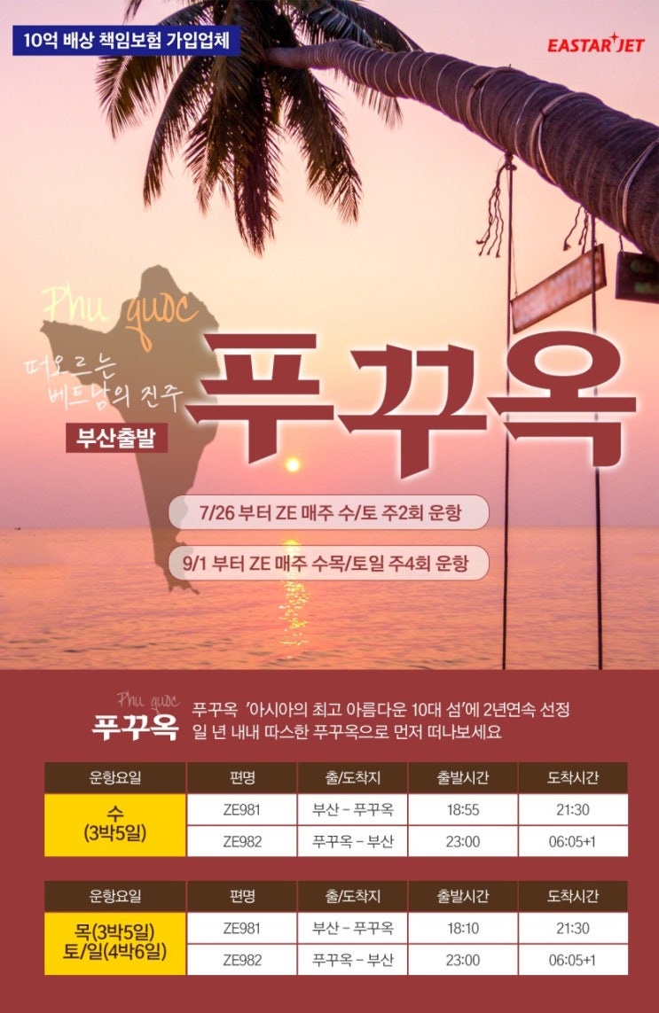 [베트남/푸꾸옥] 부산출발 : 7/26~10/25 푸꾸옥 세미패키지 OR 내마음대로 패키지 3박5일 & 4박6일 상품(이스타항공) 부산여행사-하나e여행