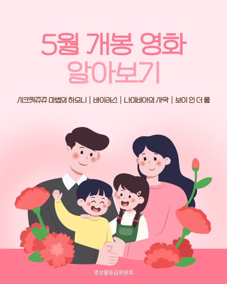 안녕하세요, 영상물등급위원회 대학생 기자단 김지은입니다 :) 어느덧 따스한 봄이 지나고 가정의 달 5월...