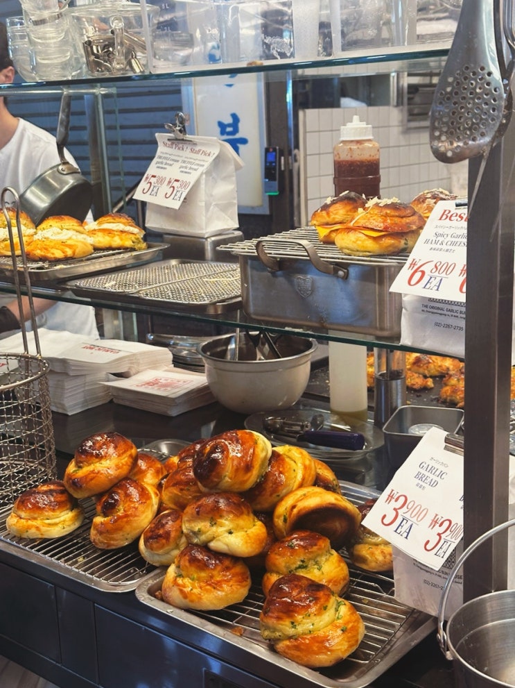 서울 종로 광장시장 빵집 삐루빼로 동생 운영 마늘빵 전문점 갈릭보이 후기