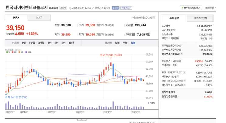 한국타이어의 경우, 관세 우려, 자동차 주식의 소외감, 그리고 수출주식이라서, 주가가 하락후 횡보 구간을...