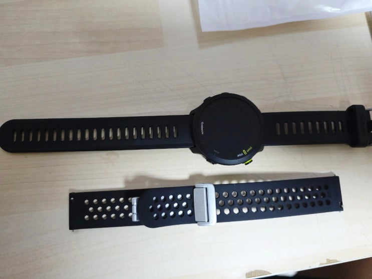 시계의 무게가 조금 무거워지기는 하지만 편의성을 위해 교체하였습니다.^ 가민 포러너 55의 시계줄은 20mm...